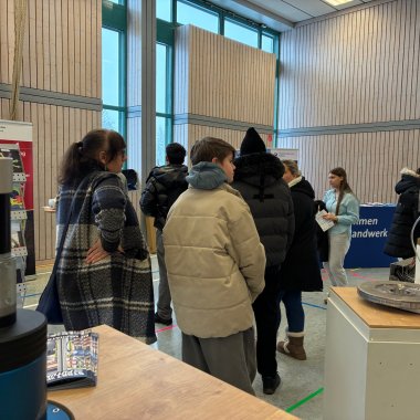 Um den Schülerinnen und Schülern ihre Arbeit, Ausbildungswege und Leistungen näher zu bringen, hatten die Standbetreiber teils imposante Anschauungsmaterialen mitgebracht, die man sich in Ruhe anschauen und erklären lassen konnte. Viele der Repräsentanten der ausstellenden Unternehmen waren zudem junge Erwachsene, die nach ihrer eigenen Ausbildung im Betrieb geblieben sind und von ihren Erfahrungen berichten konnten.