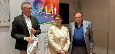 Auch Ortsbürgermeister Thomas Christmann konstatierte gegenüber den beiden Protagonisten des Abends: „Ich könnte jetzt noch so viel dazu sagen!“, ehe er sich bei Au und Rödder für die Eindrücke bedankte und sowohl ihnen als auch der Programmleiterin der Westerwälder Literaturtage, Katharina Roßbach (buchladen Wissen) im Namen der Ortsgemeinde als Gastgeberin der Veranstaltung jeweils ein Präsent überreichte.