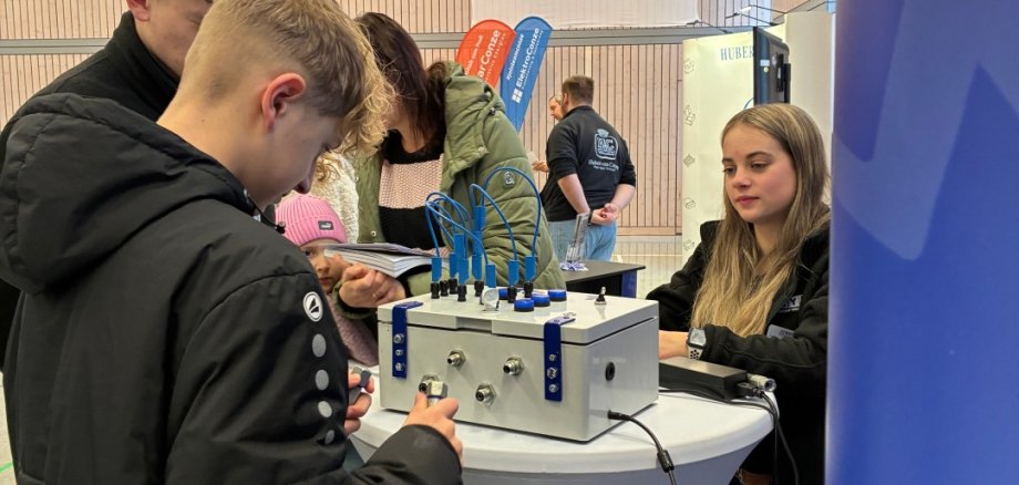 Um den Schülerinnen und Schülern ihre Arbeit, Ausbildungswege und Leistungen näher zu bringen, hatten die Standbetreiber teils imposante Anschauungsmaterialen mitgebracht, die man sich in Ruhe anschauen und erklären lassen konnte. Viele der Repräsentanten der ausstellenden Unternehmen waren zudem junge Erwachsene, die nach ihrer eigenen Ausbildung im Betrieb geblieben sind und von ihren Erfahrungen berichten konnten.