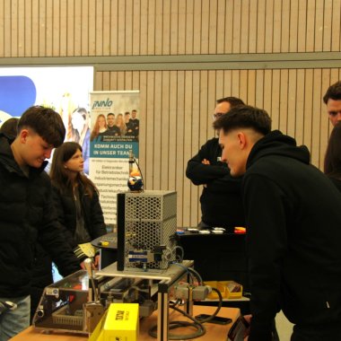 Um den Schülerinnen und Schülern ihre Arbeit, Ausbildungswege und Leistungen näher zu bringen, hatten die Standbetreiber teils imposante Anschauungsmaterialen mitgebracht, die man sich in Ruhe anschauen und erklären lassen konnte. Viele der Repräsentanten der ausstellenden Unternehmen waren zudem junge Erwachsene, die nach ihrer eigenen Ausbildung im Betrieb geblieben sind und von ihren Erfahrungen berichten konnten.
