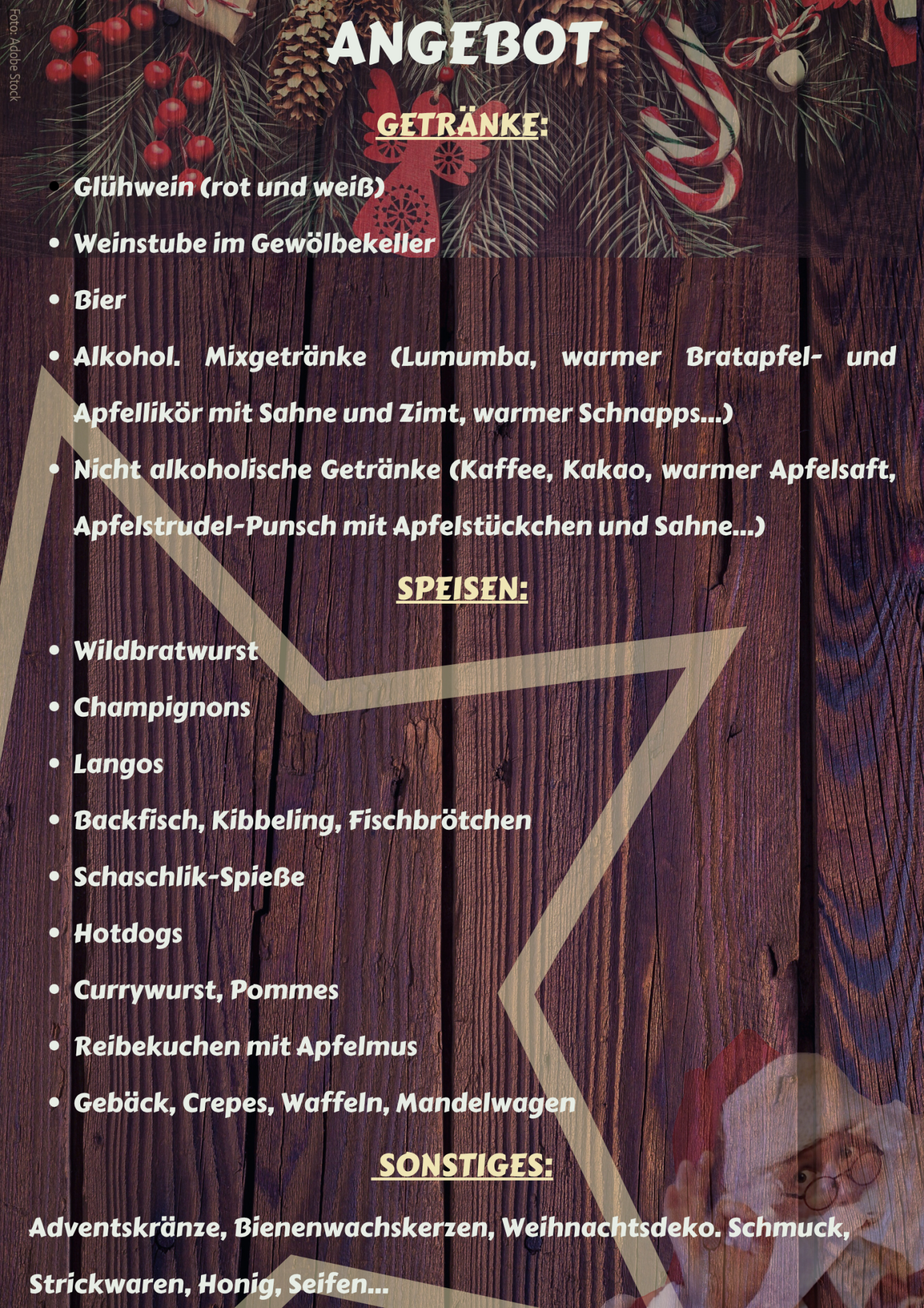 In den festlich geschmückten Hütten und Verkaufsständen präsentieren heimische Vereine, Institutionen, Kunsthandwerkerinnen und Kunsthandwerker sowie regionale Geschäftsleute ihre Angebote: Gebranntes und Gebrautes, Gebackenes und Gebratenes, Gebasteltes und Gestricktes – hier findet sich alles, was das Herz in der Vorweihnachtszeit begehrt.